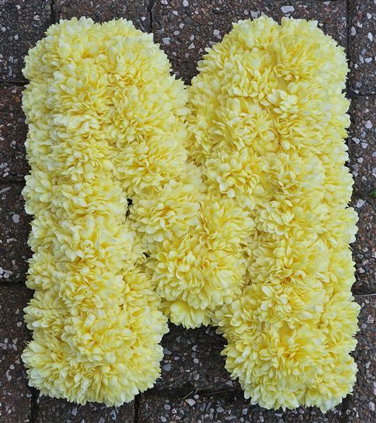 Artificial Funeral Tribute Lemon Yellow MUM letters for HIRE 1