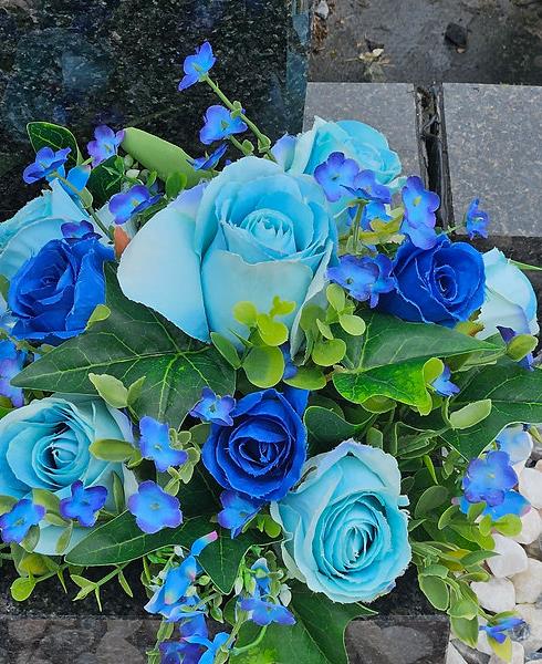 Artificial Grave Flowers - Blue Roses