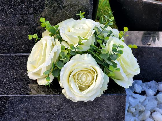 Artificial Grave Flowers - Cream Rose & Eucalyptus  3