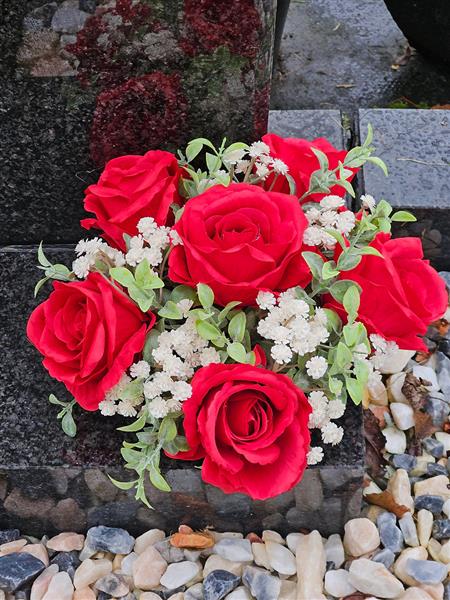Artificial Grave Flowers - Red Rose & Gypsophilia  1