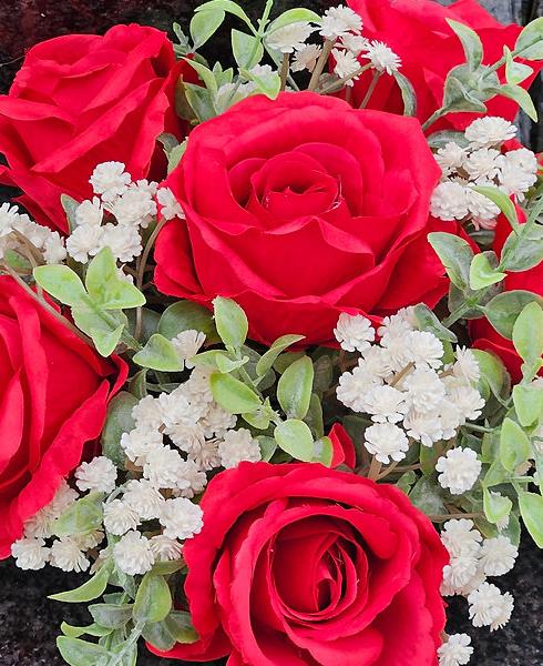 Artificial Grave Flowers - Red Rose & Gypsophilia  2