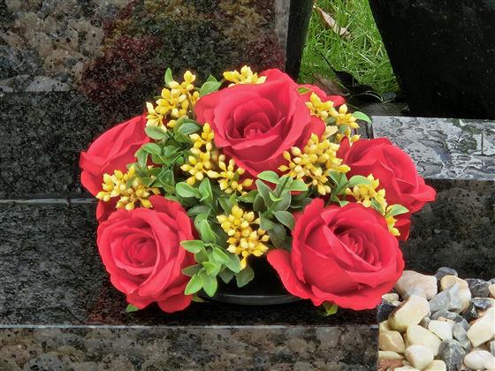 Artificial Grave Flowers - Red Rose & Yellow Berry  3