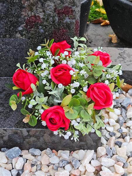 Artificial Grave Flowers - Red Rosebud & Gypsophilia  zoom 2Artificial Grave Flowers - Red Rosebud & Gypsophilia  zoom 3