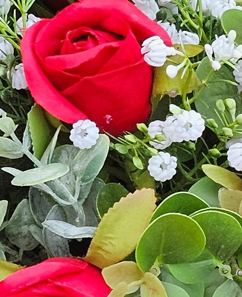 Artificial Grave Flowers - Red Rosebud & Gypsophilia  2