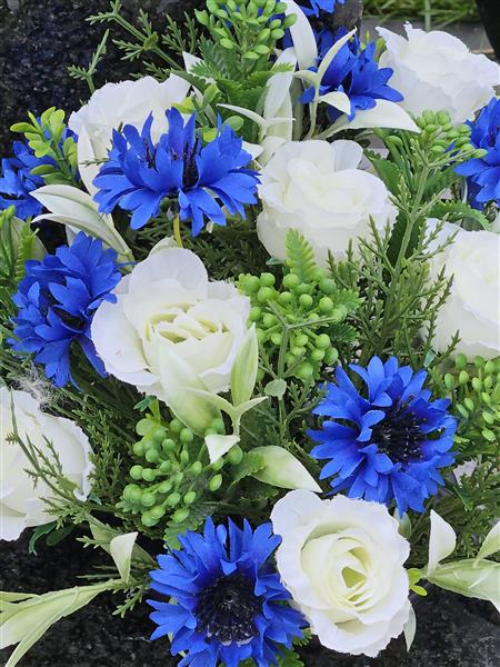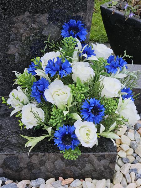 Artificial Grave Flowers - White Rose and Blue Cornflowers 2