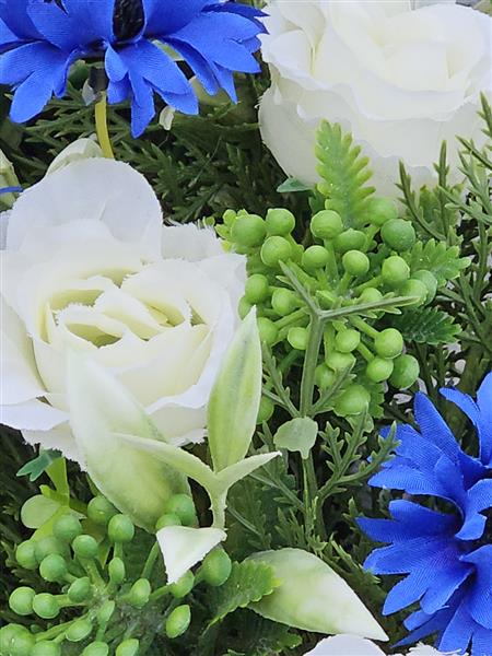 Artificial Grave Flowers - White Rose and Blue Cornflowers zoom 2Artificial Grave Flowers - White Rose and Blue Cornflowers zoom 3
