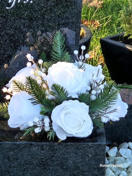 Artificial Grave Flowers - Winter White Rose & Berries  1