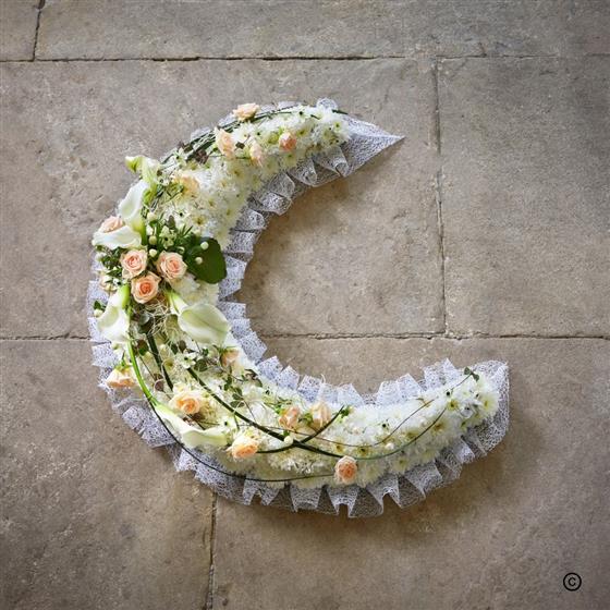Fresh Flower Crescent Moon Shape Funeral Tribute