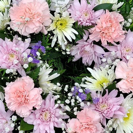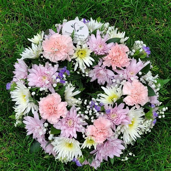 The Fresh Flower Eternal Circle from flowersbydebshop is a simple, elegant tribute featuring pink carnations symbolising a mother’s love, complemented by the florist's choice of additional flowers.