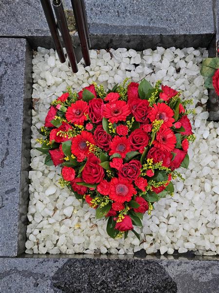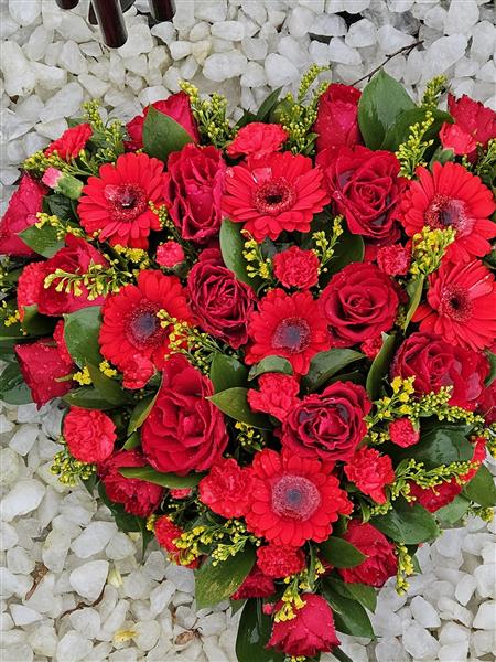 Fabulous medium size heart shaped funeral tribute - filled to the brim with a mix of fresh flowers