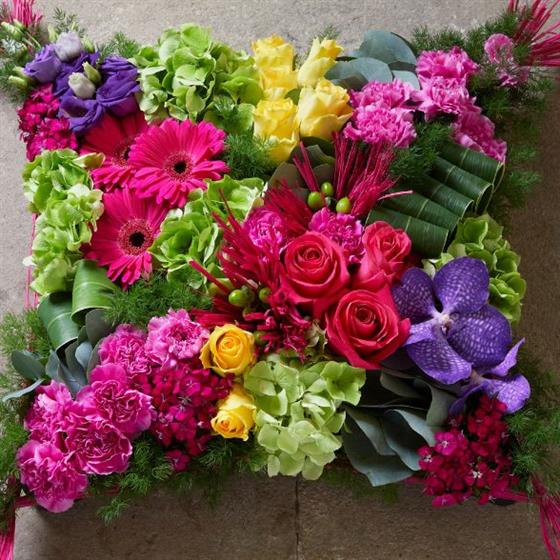 Fresh Vibrant Flower Cushion Funeral Tribute  1