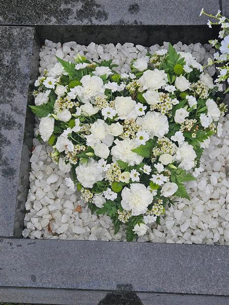 Show your love and sympathy with our Fresh Flower Large Heart Tribute. This stunning funeral flower arrangement is designed in the shape of a heart, measuring at a large size to make a grand statement. The tribute includes an elegant combination of fresh carnations, lisianthus, and santini chrysanthemums in classic green and white colors.